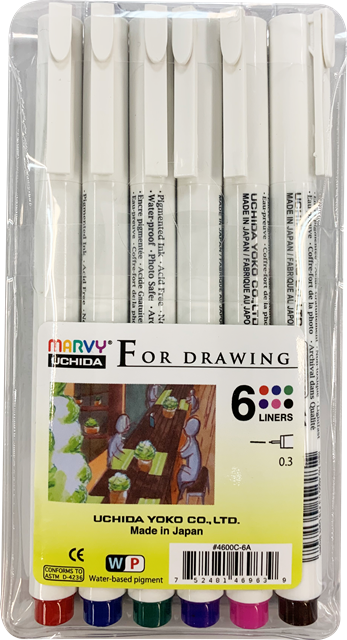 MARVY #4600-6A 0.3 6C DRAWING TECHNICAL PEN SET