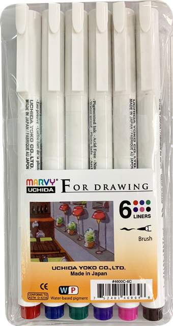 MARVY #4600-6C BRUSH 6C DRAWING TECHNICAL PEN SET