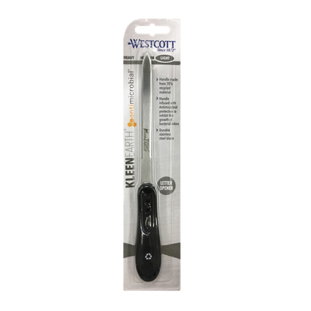 WESTCOTT #14821 125MM 抗菌手柄設計開信刀 *手柄由70%的再生材料製成 *手柄注入抗菌保護, *以抑制細菌氣味的生長 *耐用的不銹鋼刀片 *#14821