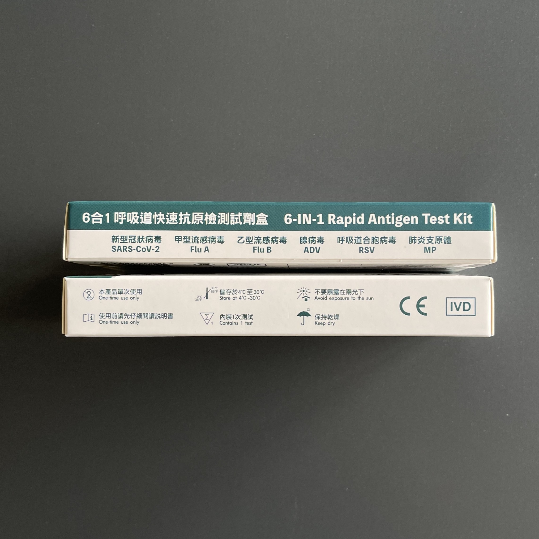 日本大和-(5盒) (6合1)新冠病毒/甲/⼄型流感/RSV合胞/ADV腺病毒/MP&Flu肺炎快速抗原檢測試劑盒(獨立包裝)