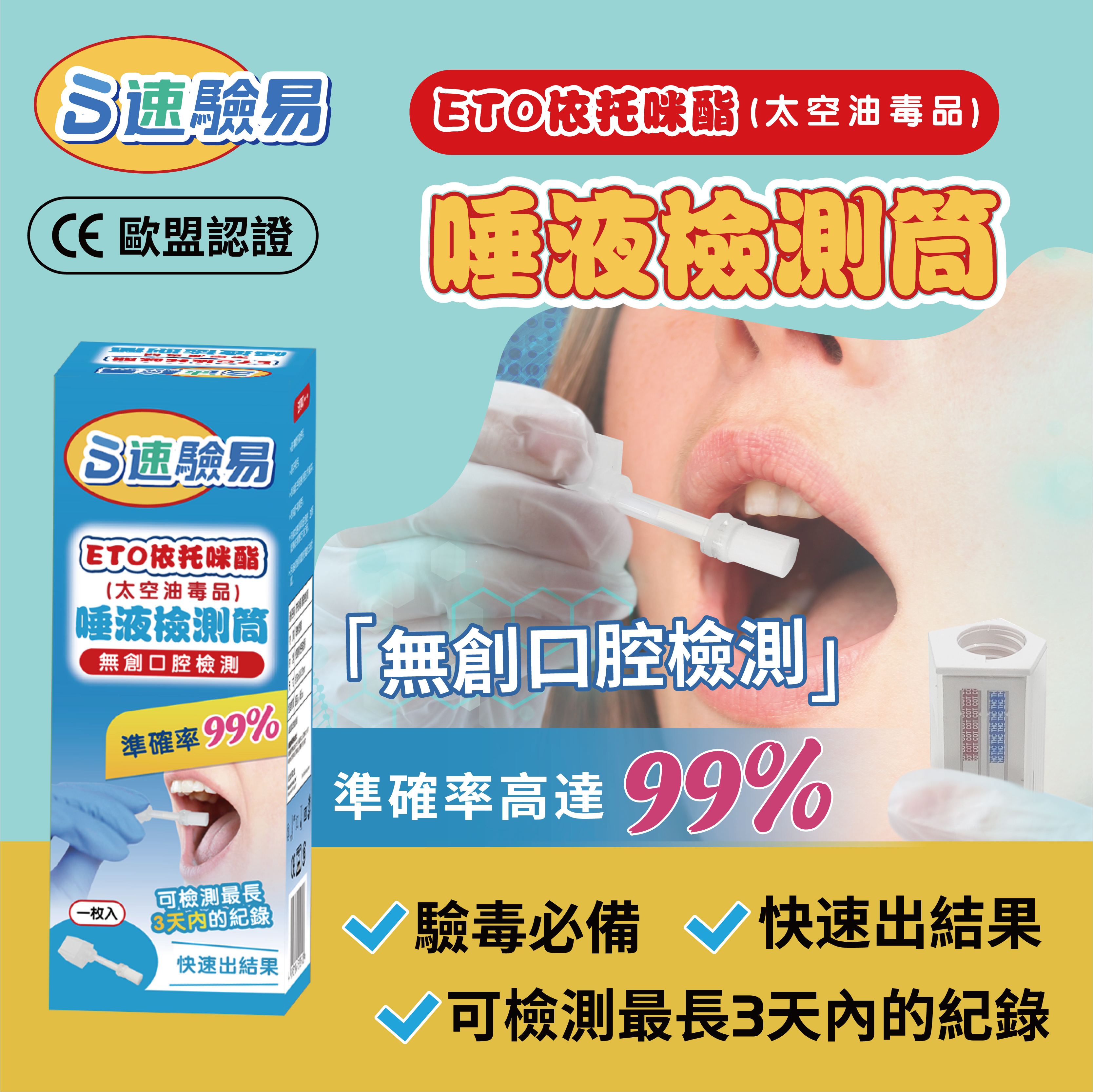 速驗易-ETO依託咪酯(太空油毒品)唾液檢測筒/無創口腔檢測/驗毒必備