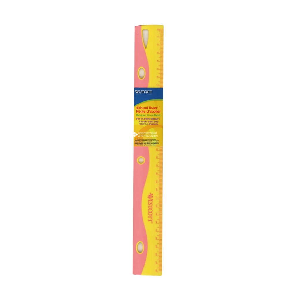 WESTCOTT #14097 12" 抗菌物料學生浪紋直尺 (粉紅+黃色)